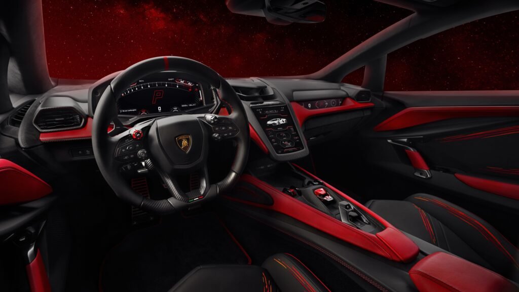 Lamborghini Revuelto का केबिन एकदम फ्यूचरिस्टिक है। इसमें लग्जरी और हाई-टेक का बेहतरीन कॉम्बिनेशन देखने को मिलता है।