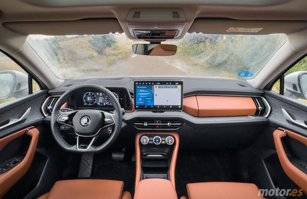 Skoda Kodiaq के कैबिन के अंदर कदम रखते ही प्रीमियम फीलिंग मिलती है। डैशबोर्ड का डिज़ाइन सिंपल लेकिन क्लासी है।